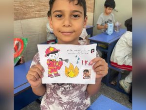 در برنامه‌ی ویژه روز آتش‌نشان، مهمان آتش‌نشان مدرسه درباره‌ی راه‌های پیشگیری از خطر و رفتار درست هنگام حادثه به دانش‌آموزان آموزش داد.