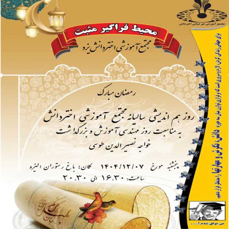 از تمامی کارکنان مجتمع آموزشی مهارتی اختر دانش (مدیران، معاونین، معلمین، کادر ستادی و سایر همکاران گرامی) دعوت میشود با حضور ارزشمند خود در این برنامه شرکت فرمایند.